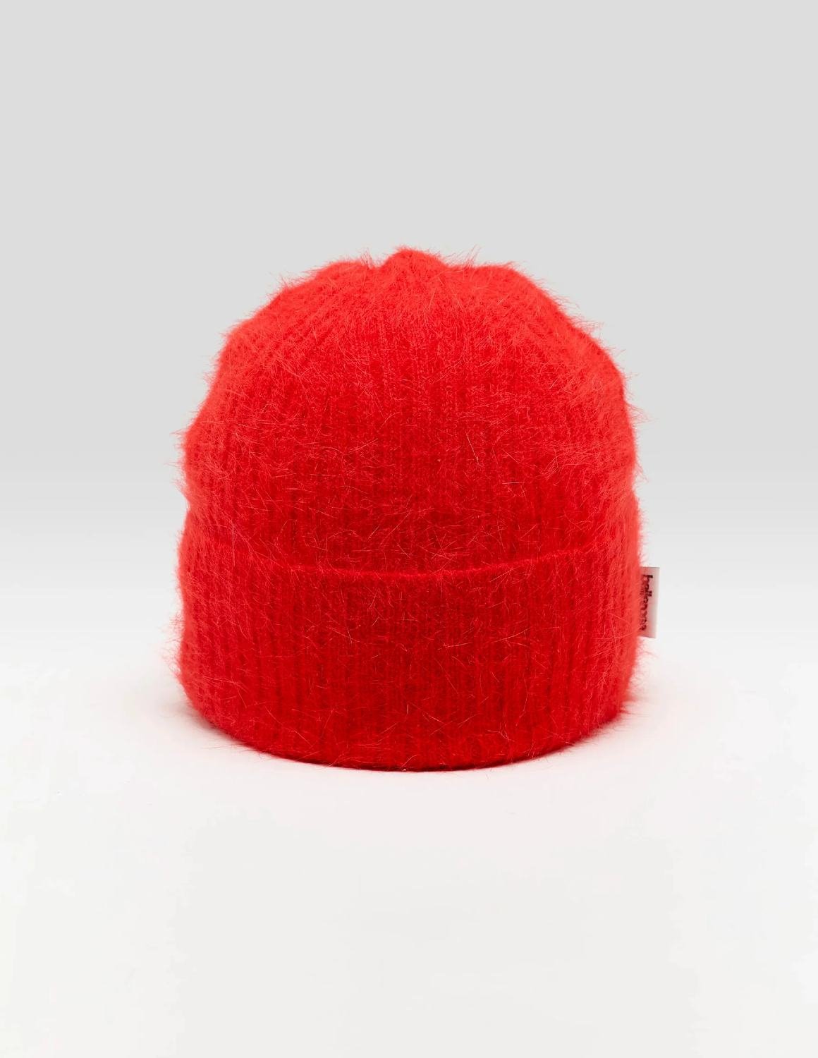 Datiz in sanguine is an angora-blend, bright red beanie from Bellerose with a brushed finish.