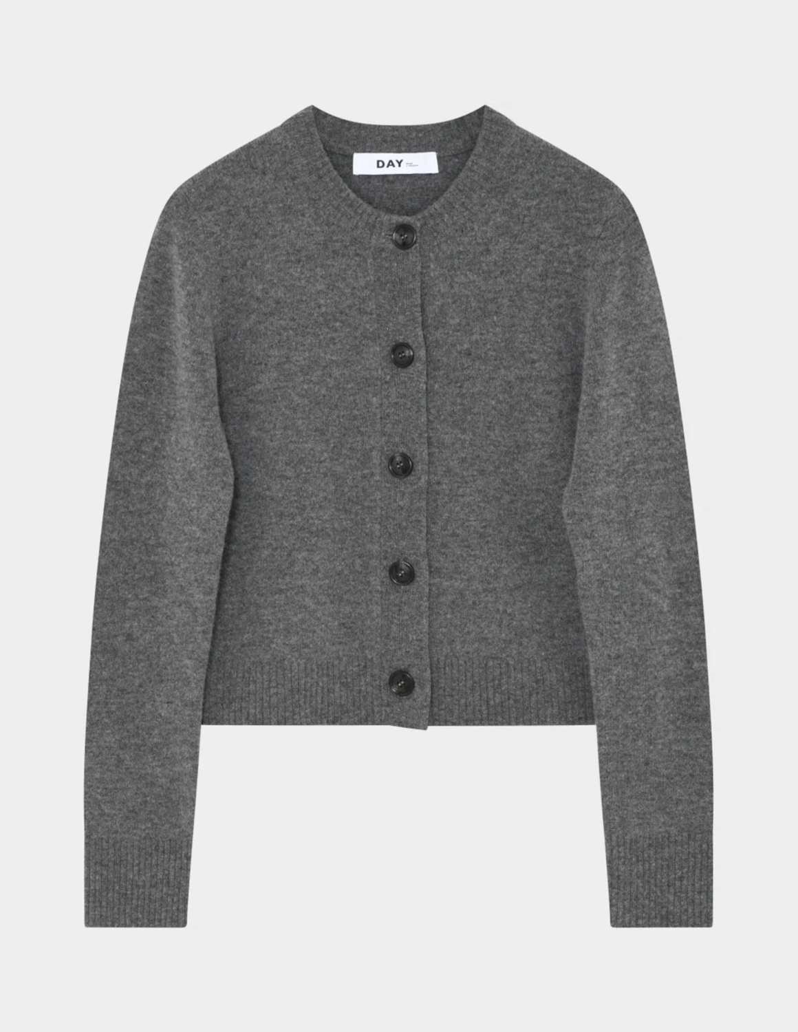 The Riot cardigan from Day Birger et Mikkelsen is a simple design in soft grey wool, the perfect layering piece.