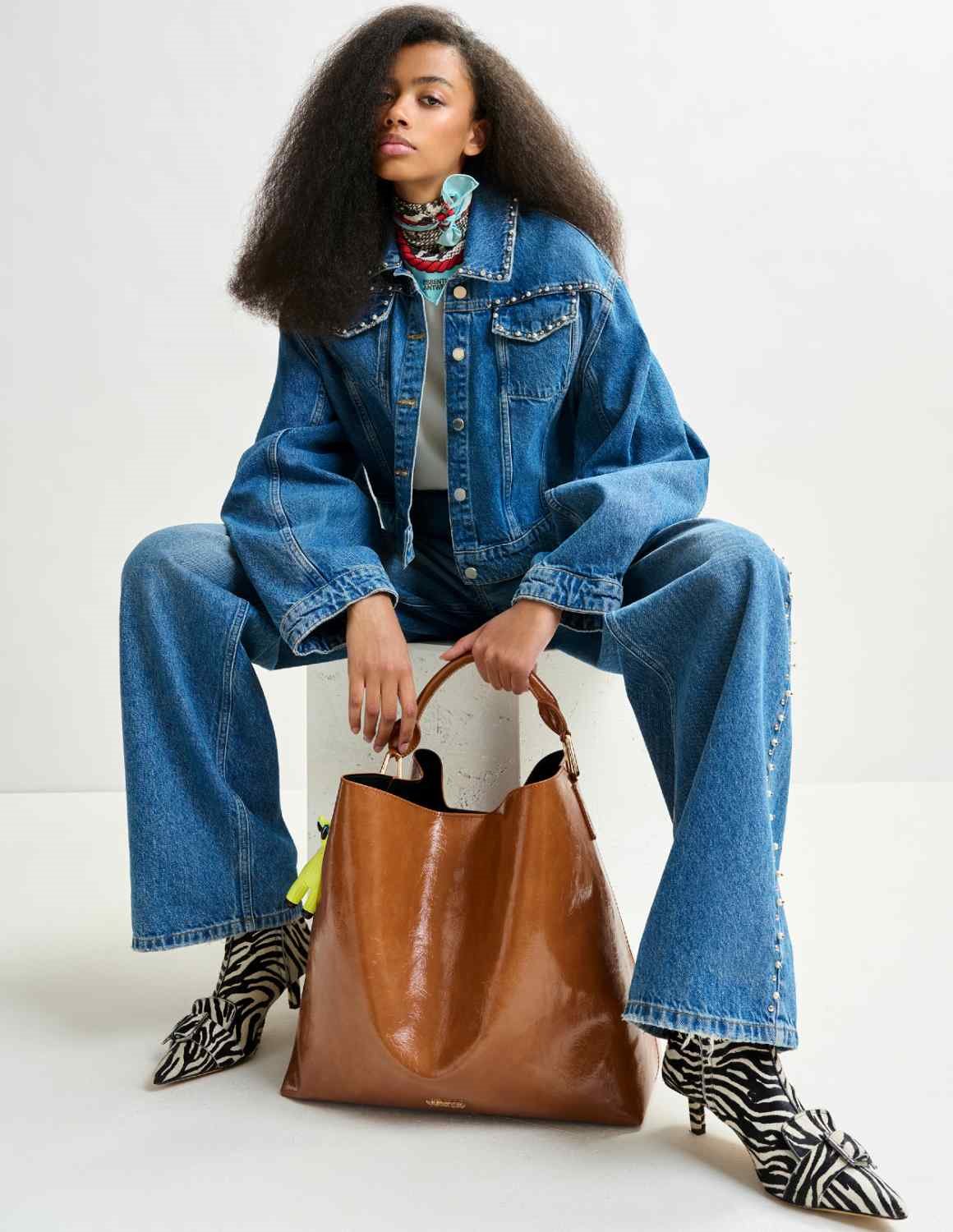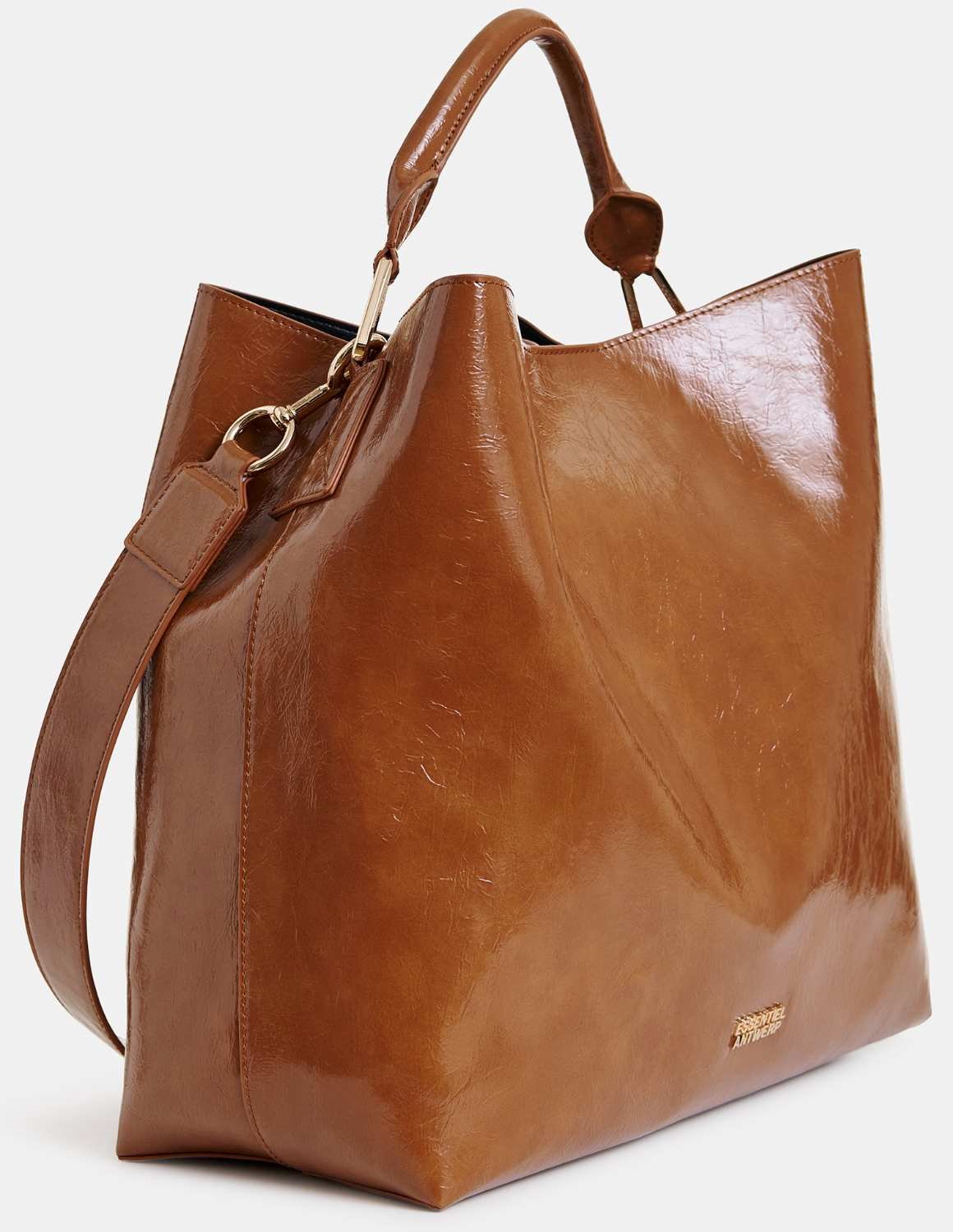 Essential Antwerp Ihurley bag is crafted from glossy faux leather in a slouchy, rectangular shape, this shopper bag features a comfortable rolled top handle for a chic handheld option. It also features a detachable shoulder strap for hands-free wear. The lined interior has a zipped pocket and card slot to keep small essentials secure and organized.