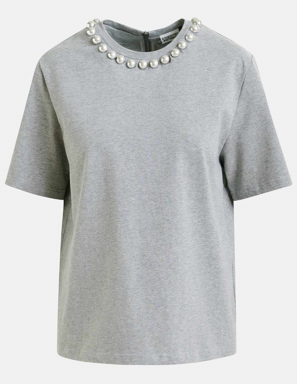 Essential Antwerp Intenso cotton T-shirt is cut for a boxy, relaxed silhouette, it features short sleeves and a clean round neckline adorned with oversized metallic pearl-style embellishments for an elevated twist. A concealed zip at the back adds a polished finish. Wear it tucked into tailored pants or let it elevate your go-to denim.
