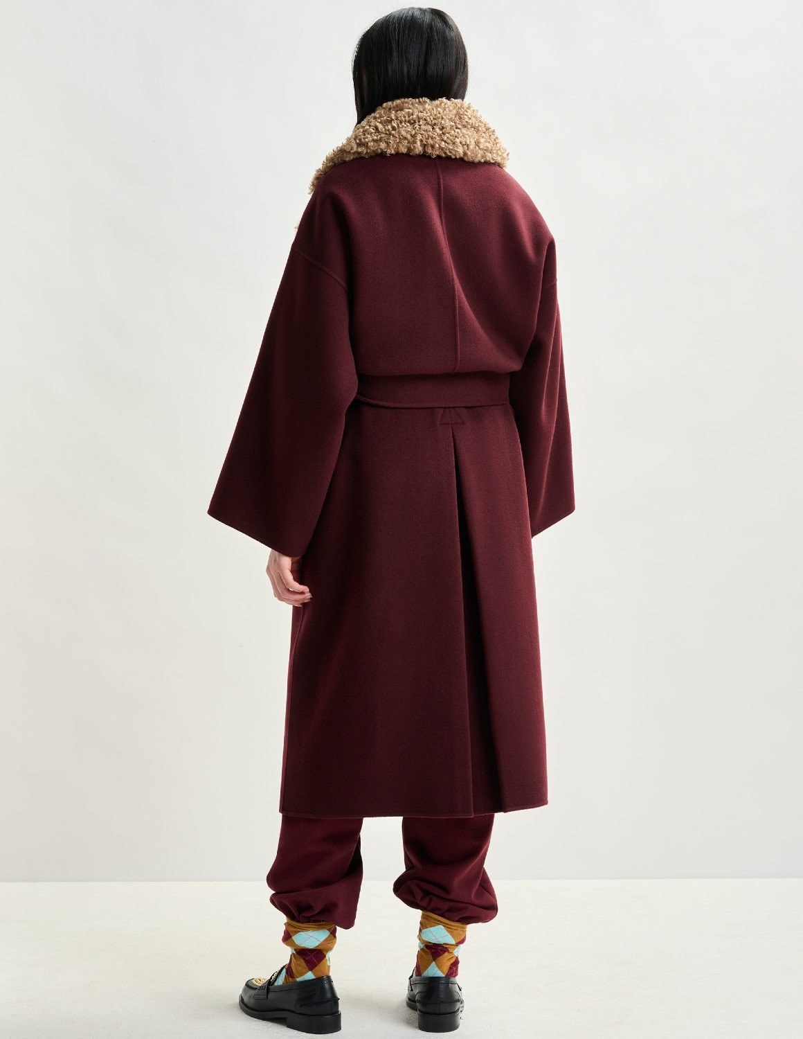Essential Antwerp Irno coat is woven from pure wool thread. This coat has been carefully felted to create plush softness and luster. Its slightly A-line silhouette comes with a belt to wear it closed, alongside practical patch pockets, smart notched lapels, and dropped shoulders. A detachable faux fur collar adds a touch of versatility and refinement. This timeless piece will provide every outfit with extra polish, tailored to be worn for many seasons to come.
