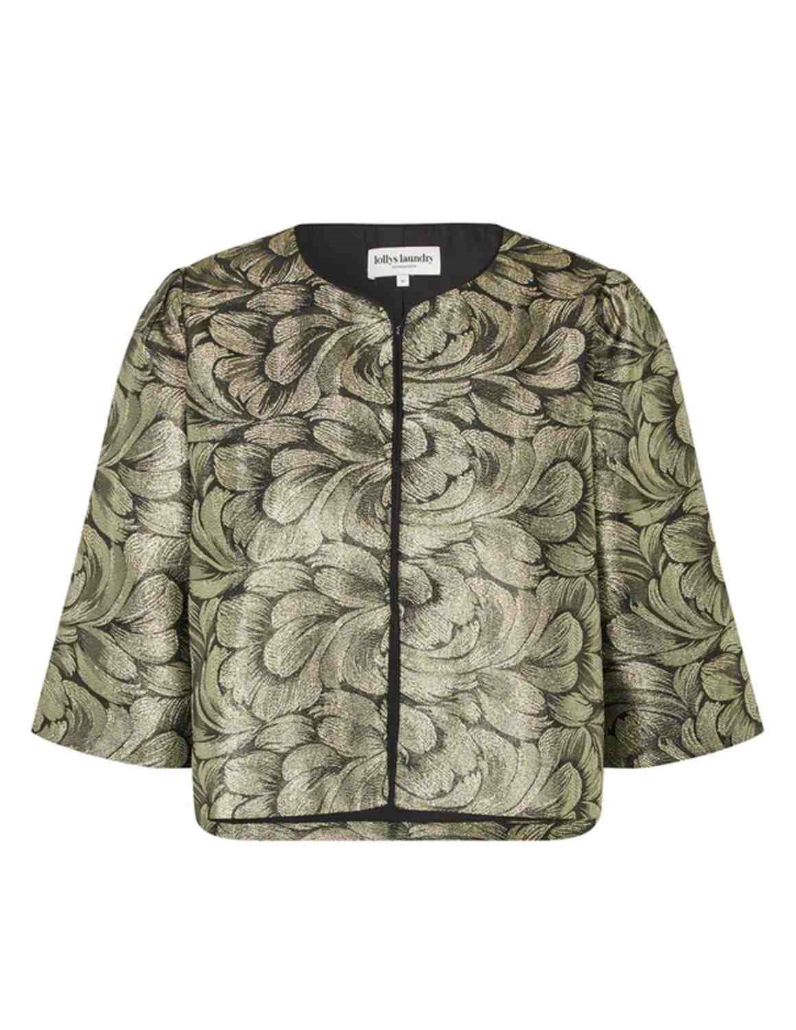 The TrineLL from Lollys Laundry is a short, elegant, 3/4 sleeve jacket, perfect for the party season. Crafted from a beautiful woven jacquard fabric with botanical pattern in a metallic finish, it adds a luxurious touch to any look. The open front with hook fastening makes it ideal for layering – wear it over a shirt for a classic look, with a light turtleneck, for everyday, or with the matching CatalinaLL skirt for maximum impact on a night out.