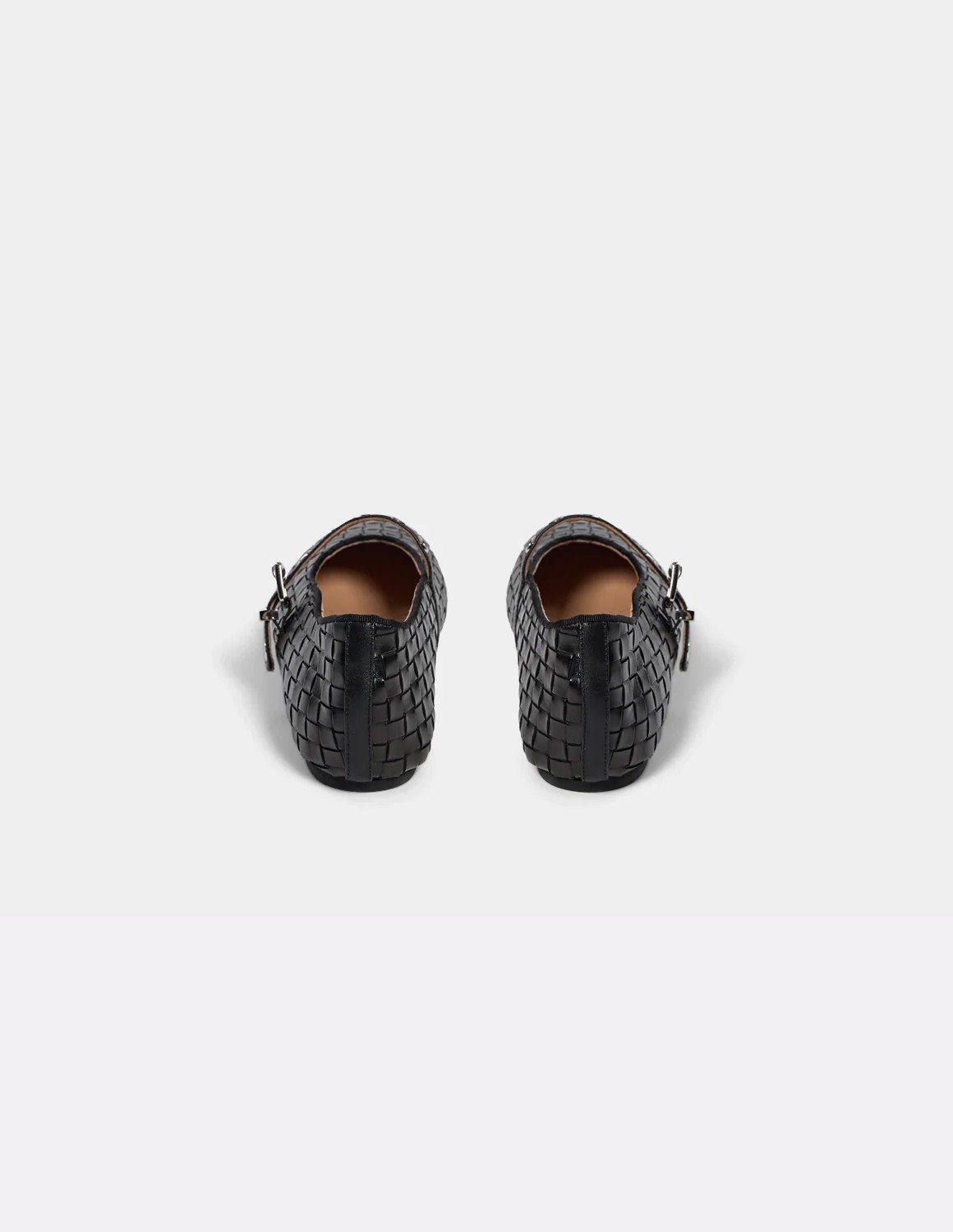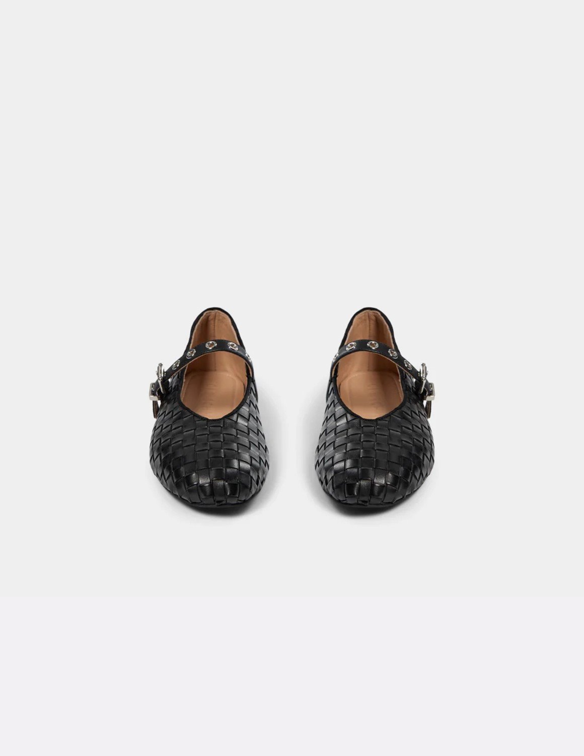 - Flat ballerina shoes with a woven cut out design and rounded toe.